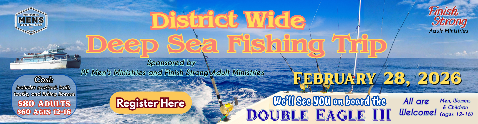 All are welcome to join us for a great day of Fun, Fishing, and Fellowship on board the Double Eagle III out of Clearwater Marina!Registration is $80 per Adult $60...